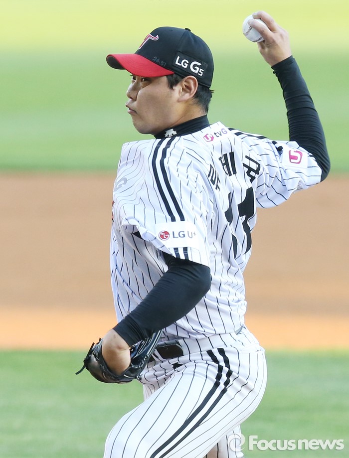 (서울=포커스뉴스) 13일 서울 잠실구장에서 열린 2016 프로야구 SK-LG 경기에서 1회초 LG 선발투수 류제국이 투구하고 있다.