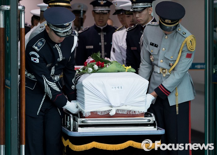 (서울=포커스뉴스) 14일 오전 서울 송파구 아산병원 장례식장에서 강영훈 전 국무총리의 발인식이 엄수되고 있다.