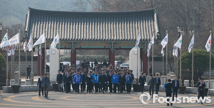 안희정 충남지사도 18일 광주를 방문한다. 안 지사는 기념식에 참석한 후 재래시장에 대한 방문도 한다.5·18 광주민주화운동 기념일을 맞아 야권의 대권 잠룡들이 일제히 광주를 방문한다. 사진은 김종인 더불어민주당 비대위 대표가 지난 3월 27일 오전 광주 북구 국립5·18민주묘지를 방문해 20대 총선 전남 및 광주지역 후보들과 함께 참배를 위해 이동하고 있는 모습이다. 2016.03.27 박동욱 기자