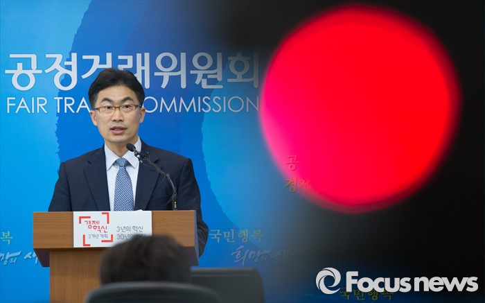 (세종=포커스뉴스) 정창욱 공정거래위원회 서비스업감시과장이 13일 오전 세종시 공정위 브리핑룸에서 총수 친족회사 밀어준 현대그룹에 대해 총수일가 사익편취 및 부당지원 행위로 시정명령과 과징금 12억 8500만원을 부과했다고 밝히고 있다.