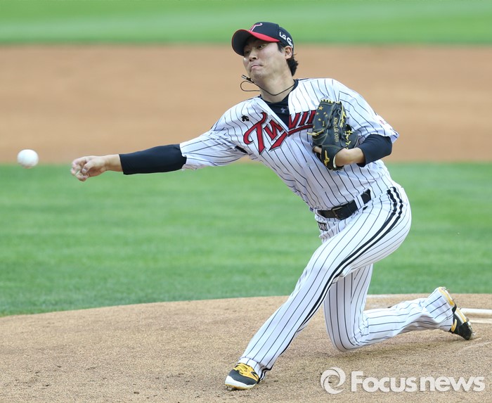 (서울=포커스뉴스) 15일 서울 잠실구장에서 열린 2016 프로야구 SK-LG 경기에서 1회초 LG 선발투수 우규민이 투구하고 있다.