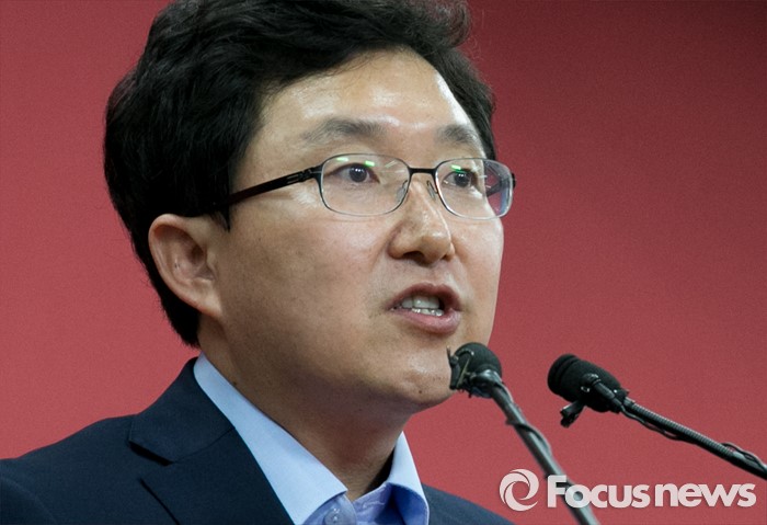 (서울=포커스뉴스) 새누리당 혁신위원장으로 임명된 김용태 의원이 15일 오후 서울 여의도 당사에서 원내지도부와 함께 기자회견을 하고 있다.
