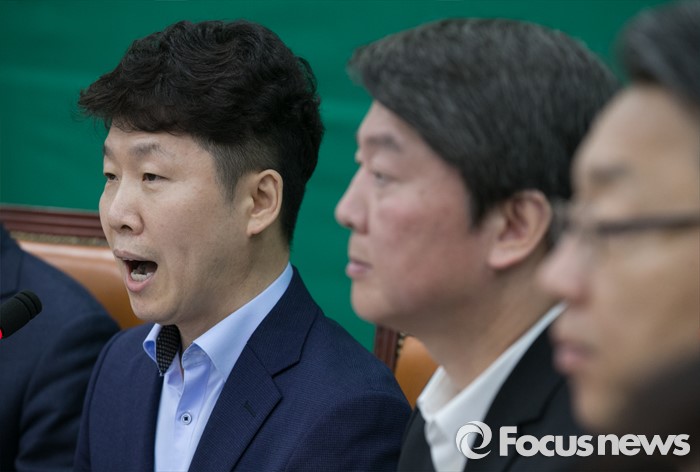 (서울=포커스뉴스) 16일 오전 서울 여의도 국회에서 열린 국민의당 최고위원회의에 국민대표로 참석한 황인국(왼쪽) 한국청소년재단 상임이사가 발언하고 있다.