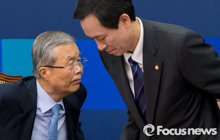 (서울=포커스뉴스) 16일 오전 서울 여의도 국회에서 열린 더불어민주당 제34차 비상대책위원회의에 참석한 김종인 비대위원회 대표(왼쪽)와 우상호 원내대표가 회의를 마친 후 자리에서 일어나고 있다.