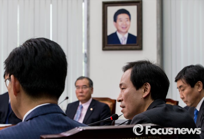 (서울=포커스뉴스) 16일 오전 서울 여의도 국회에서 열린 더불어민주당 제34차 비상대책위원회의에 참석한 우상호 원내대표가 모두발언 하고 있다.