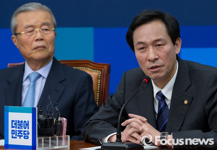 (서울=포커스뉴스) 우상호 더불어민주당 원내대표가 16일 청와대가 '임을 위한 행진곡'의 합창 결정을 자신들에게는 전하지 않고 국민의당에만 전달한 것과 관련 "국민의당하고 잘해보라 그래”라며 반발했다.