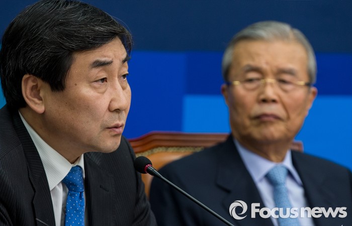 (서울=포커스뉴스) 16일 오전 서울 여의도 국회에서 열린 더불어민주당 제34차 비상대책위원회의에 참석한 이종걸(왼쪽) 전 원내대표가 모두발언 하고 있다.