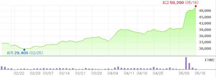 그는 "판관비 증가에도 불구하고 판관비율이 전년동기 대비 감소해 매출 레버리지가 본격화됐다"고 덧붙였다.최근 3개월간 경동나비엔 주가 추이 <그래픽출처=네이버>