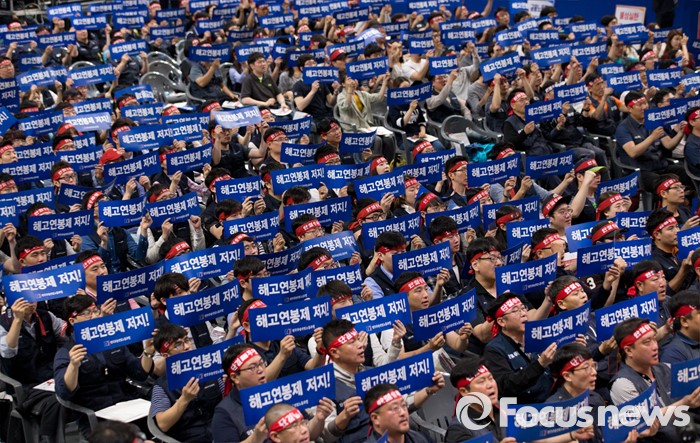 | △ 성과연봉제 반대하는 금융노조 |