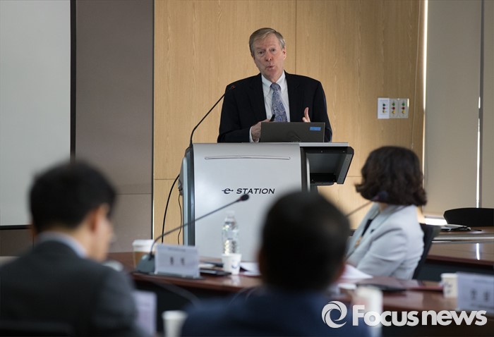 (세종=포커스뉴스) 랜달존스(Randal Jones) OECD 사무국 선임이코노미스트가 16일 오전 세종시 KDI(한국개발연구원) 영상회의실에서 열린 OECD 한국 경제보고서 발표 세미나에서 거시경제 동향 및 전망에 대한 기조발표를 하고 있다.