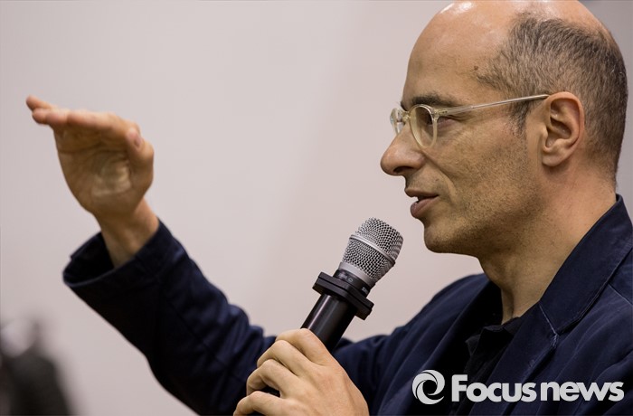 (서울=포커스뉴스) 16일 오후 서울 종로구 서울예술고등학교를 찾은 프랑스 작가 베르나르 베르베르가 '오늘날의 예술적 지능'이란 주제로 학생들에게 강연하고 있다.