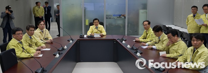 (세종=포커스뉴스) 황교안 국무총리가 16일 오후 세종시 정부세종청사 위기관리종합상황실에서 민방위의 날을 맞아 실시된 제401차 민방공 대피훈련에 참가해 국민안전처와 영상회의를 하고 있다.