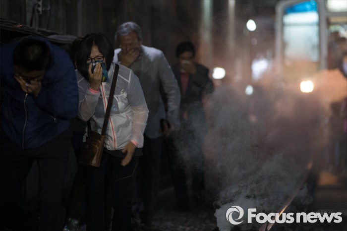 (서울=포커스뉴스) 16일 오후 서울 송파구 잠실역에서 시민들이 '재난대응 안전한국훈련'에 참가해 대피훈련을 하고 있다.