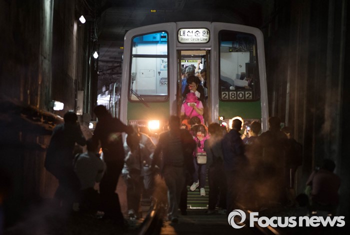 (서울=포커스뉴스) 16일 오후 서울 송파구 잠실역에서 시민들이 '재난대응 안전한국훈련'에 참가해 대피훈련을 하고 있다.