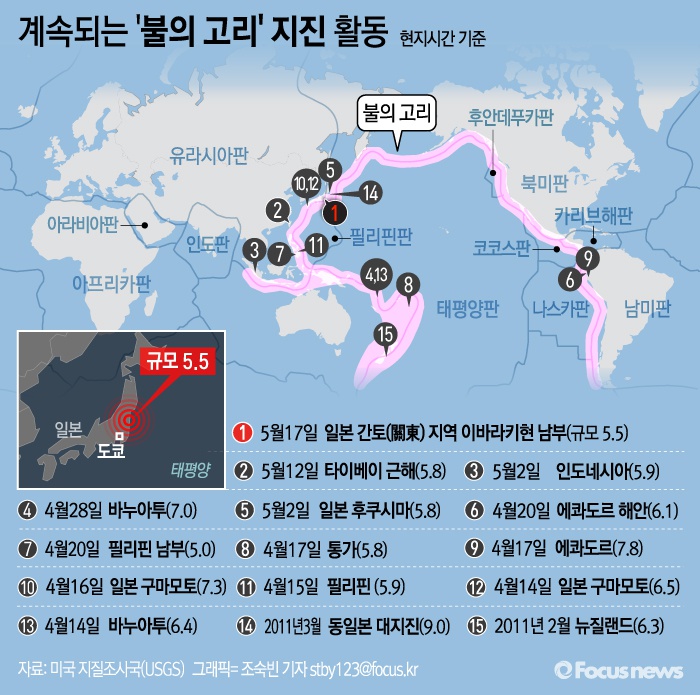 | △ [그래픽] 계속되는 '불의 고리' 지진 활동 |