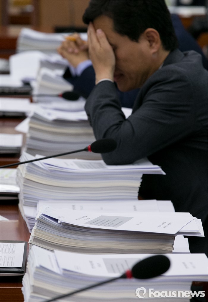 (서울=포커스뉴스) 17일 오전 서울 여의도 국회에서 열린 법제사법위원회 전체회의에 참석한 의원들이 법안 관련 자료를 살펴보고 있다.