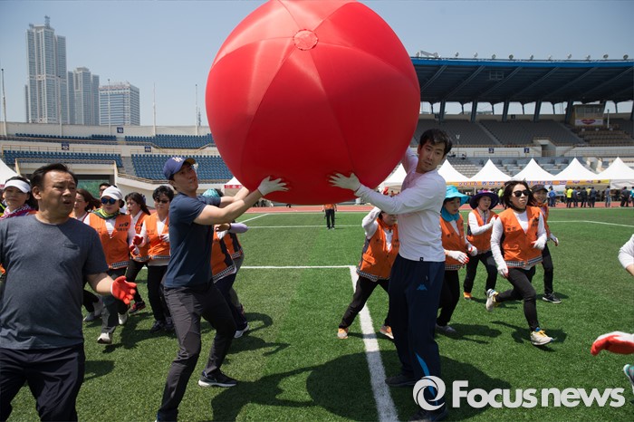 (서울=포커스뉴스) 17일 오전 서울 양천구 목동운동장에서 열린 2016 의용소방대 종합소방기술경연대회에서 참가자들이 공 굴리기 경기를 하고 있다.