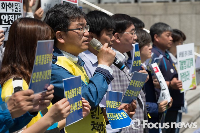 (서울=포커스뉴스) 17일 오전 서울 종로구 세종문화회관 앞에서 환경 및 시민단체와 가습기 살균제 피해자들이 가습기 살균제 사고에 대한 근본적 대책마련을 촉구하며 기자회견을 하고 있다.