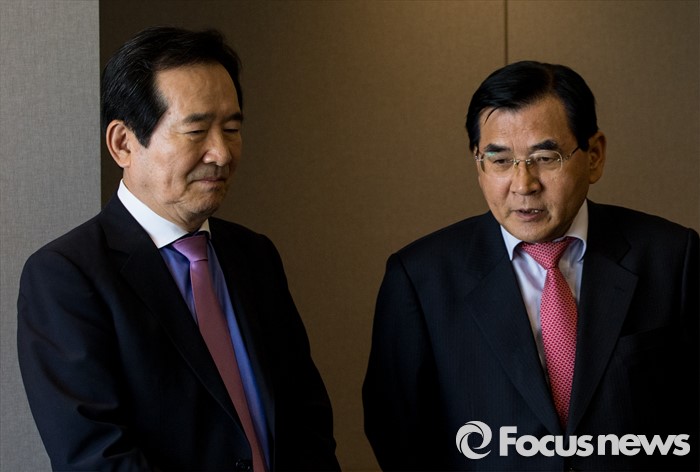 (서울=포커스뉴스) 17일 오후 서울 중구 플라자호텔에서 열린 경제사회발전 노사정위원회 역대 상임위원 간담회에 초대 상임위원을 맡았던 정세균(왼쪽) 더불어민주당 의원과 김대환 위원장이 참석해 대화하고 있다.