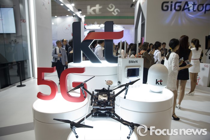 (서울=포커스뉴스) 17일 오전 서울 강남구 코엑스에서 열린 '월드 IT쇼 2016'의 KT부스앞에 전시된 실시간 방송용 드론 장비
