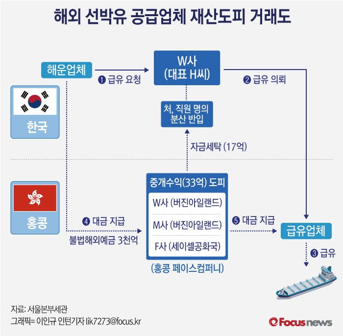 | △ [그래픽] 해외 선박유 공급업체 재산도피 거래도 |