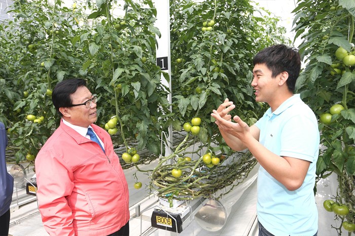 (김제=포커스뉴스) 이동필 농림축산식품부장관이 지난 16일 전북 김제 하랑영농조합법인에서 '청년들과 함께하는 새참토크'를 갖고 있다. <사진제공=농림축산식품부>