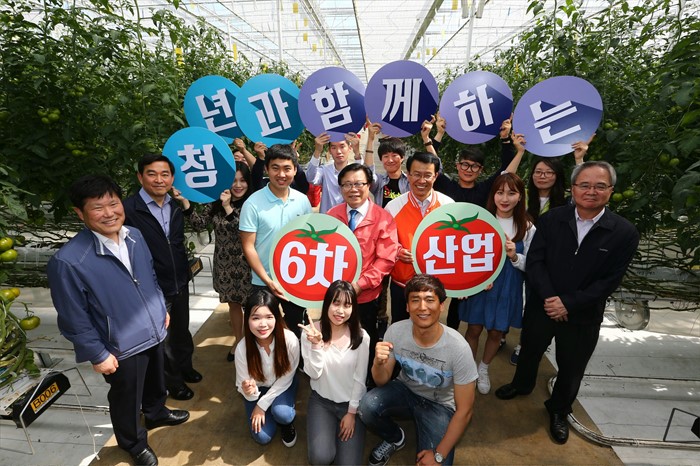 (김제=포커스뉴스) 이동필 농림축산식품부장관이 지난 16일 전북 김제 하랑영농조합법인에서 '청년들과 함께하는 새참토크'를 마치고 기념촬영을 하고 있다. <사진제공=농림축산식품부>