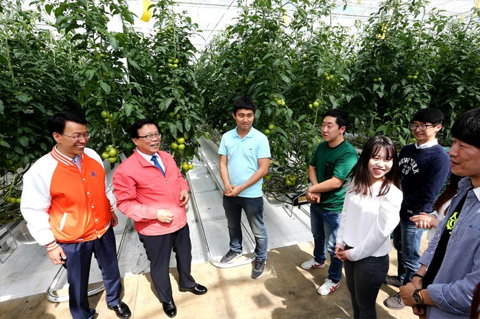 (김제=포커스뉴스) 이동필 농림축산식품부장관이 지난 16일 전북 김제 하랑영농조합법인에서 '청년들과 함께하는 새참토크'를 갖고 있다. <사진제공=농림축산식품부>