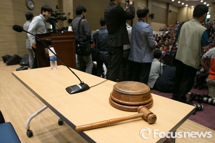(서울=포커스뉴스) 17일 오후 서울 여의도 국회 의원회관에서 비대위 구성안 및 당헌 당규개정안 등 현안 처리를 위해 예정된 4차 새누리당 전국위원회에 의사봉이 놓여 있다. 이날 전국위원회의는 앞서 예정된 상임전국위원회를 개최해 당헌개정안 등을 심의할 예정이었지만, 친박계 의원들이 대거 불참해 참석자 미달로 회의가 열리지 못 했다.