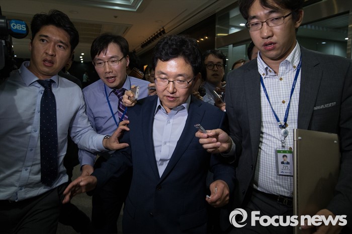 (서울=포커스뉴스) 김용태 새누리당 의원이 17일 오후 서울 여의도 정론관에서 혁신위원장 사퇴 의사를 밝힌 후 국회 기자회견장을 떠나고 있다.