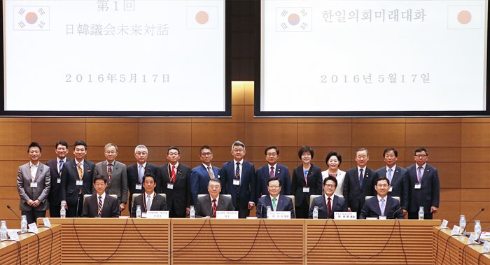 (서울=포커스뉴스) 정의화(앞줄 오른쪽 세번째) 국회의장 일행이 17일 오전 일본 도쿄 중의원 제1의원회관에서 열린 '1회 한·일의회 미래대화'에 참석해 오시마 다다모리(앞줄 왼쪽 세번째) 중의원 의장 등과 기념촬영을 하고 있다. <사진제공=국회>