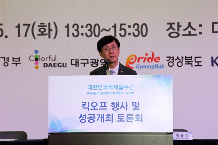 (대구=포커스뉴스) 김경환 국토교통부 차관이 17일 대구 EXCO에서 국토교통부, 환경부, 대구광역시, 경상북도 간 대한민국 국제물주간 공동개최를 위한 업무협약에서 인사말을 하고 있다. <사진제공=국토교통부>