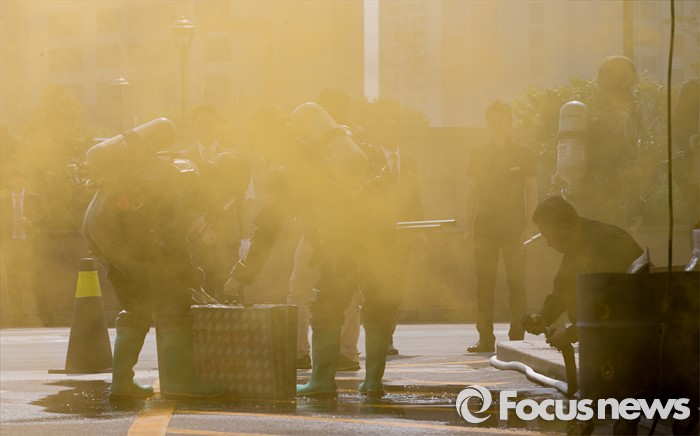 (서울=포커스뉴스) 17일 오후 서울 서초구 JW메리어트호텔 서울에서 민·관·군 관계자들이 2016 재난대응 안전한국훈련을 하고 있다.