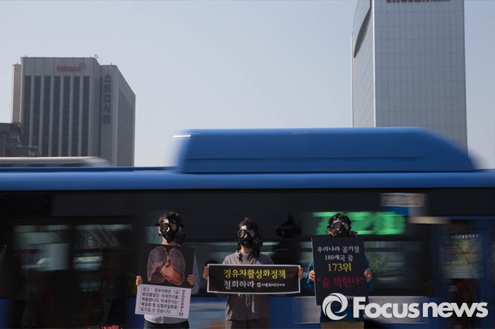 (서울=포커스뉴스) 서울환경운동연합이 17일 서울 광화문 광장에서 정부의 경유차 활성화 정책 철회를 요구했다.