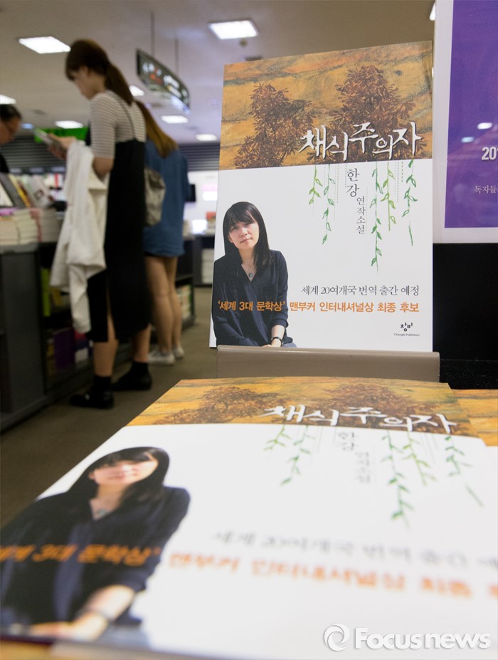 (서울=포커스뉴스) 소설가 한강의 '채식주의자'가 맨부커 인터내셔널상 수상 후 판매량이 급증하고 있다. 17일 오후 서울 서초구 교보문고 강남점에서 채식주의자가 진열돼 있다.