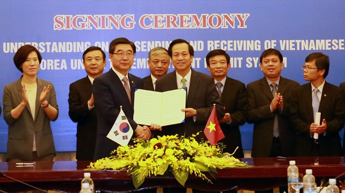 (서울=포커스뉴스) 이기권 고용노동부장관이 베트남 정부 초청으로 17일 베트남을 방문, 따오 응옥 쭝(Dao Ngoc Dung) 베트남 노동보훈사회부 장관을 만나 고용허가제 MOU를 체결하고 기념촬영을 하고 있다. <사진제공=고용노동부>