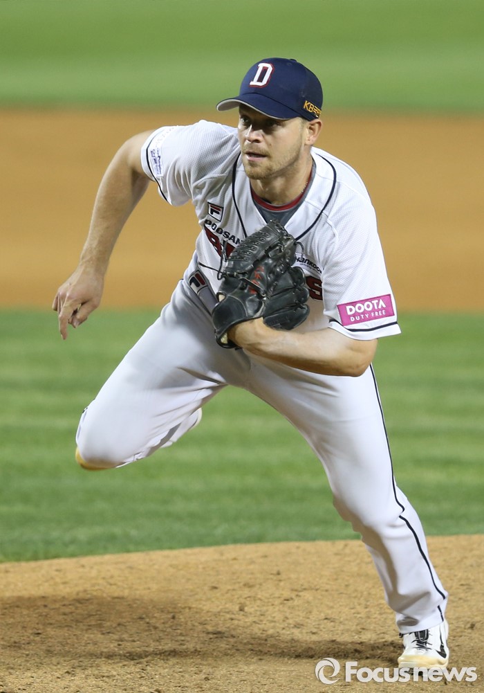 | △ 번트 수비하는 두산 보우덴 |