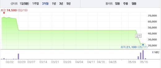 삼부토건은 지난 2월26일 보통주 880만여주를 148만여주로 줄이는 1차 감자를 단행했고, 이후 유상증자를 통해 6078만여주 신주를 발행했다. 이를 다시 623만주로 줄이는 2차 감자를 실시하면서 거래가 2달 이상 중단됐다.주가흐름<사진출처=네이버 캡쳐>