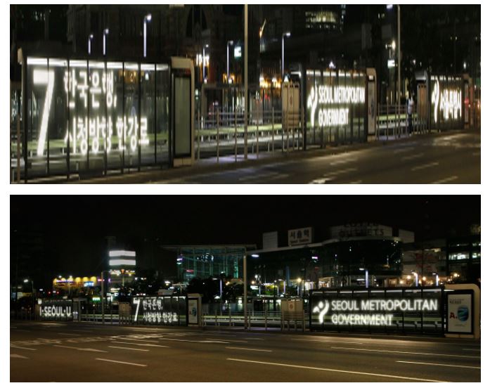 서울시는 2009년 7월 서울역 버스환승센터를 설치할 당시 정보 표출과 조명 기능을 동시에 수행할 수 있도록 승차대 12개소에 미디어파사드를 설치했다.