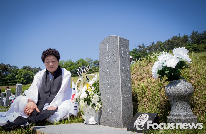 (광주=포커스뉴스) 36주년 5·18민주화운동 기념식이 거행된 18일 오전 광주 북구 운정동 5·18민주묘지에서 한 유가족이 묘비 곁을 지키고 있다.