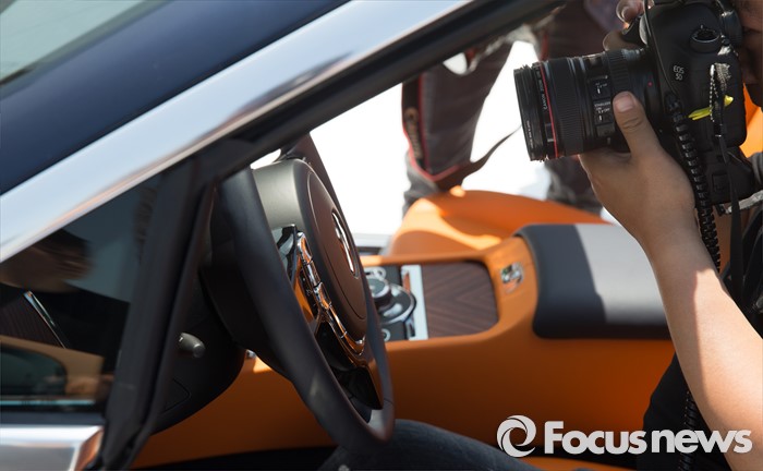 (서울=포커스뉴스) 18일 오전 서울 중구 반얀트리 클럽 앤 스파에서 열린 '롤스로이스 던(DAWN) 발표 행사중 한 취재진이 신차의 내부를 카메라에 담고 있다.