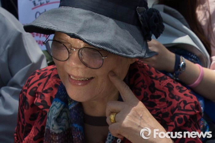 (서울=포커스뉴스) 18일 오후 서울 종로구 옛 일본대사관 앞에서 열린 '제1231차 일본군 위안부 문제해결을 위한 정기 수요시위'에 참석한 위안부 피해자 이용수 할머니가 사진촬영을 하고 있다.
