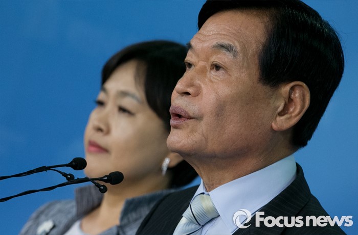 (서울=포커스뉴스) 서상기(오른쪽) 새누리당 의원과 송희경 당선인이 18일 오후 서울 여의도 국회 정론관에서 국방부가 준비 중인 이공계 대체복무 폐지 계획과 관련 현장의견 청취 및 당·정간 논의 필요성 등을 전하는 기자회견을 하고 있다.
