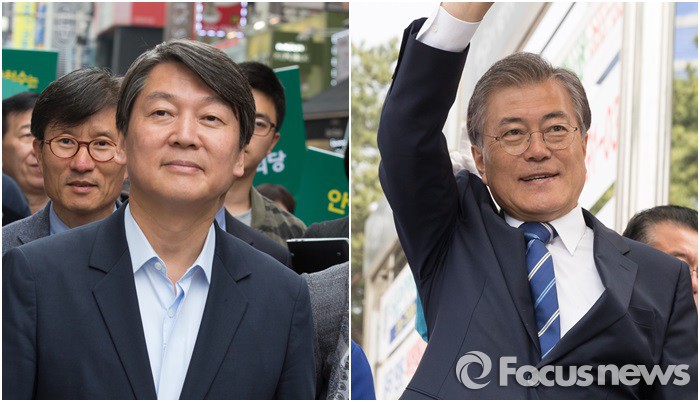 이번 조사는 5월 16~17일 이틀간 전국 19세 이상 성인남녀 1,010명을 대상으로 구조화된 설문지를 이용한 무/유선RDD 자동응답 방식으로 조사됐다. 응답률은 3.1%이고 표본오차는 95%신뢰수준에서 ±3.1%p다. 자세한 조사개요와 결과는 중앙선거여론조사공정심의위원회 홈페이지 (http://www.nesdc.go.kr) 참조.5·18민주화운동 기념식이 열린 18일 문재인 전 더불어민주당 대표와 안철수 국민의당 상임공동대표가 조우했다. 사진은 안철수 국민의당 상임공동대표(왼쪽)와 문재인 전 더불어민주당 대표. <사진출처=포커스뉴스 DB> 2016.05.18 송은경 기자문장원 기자