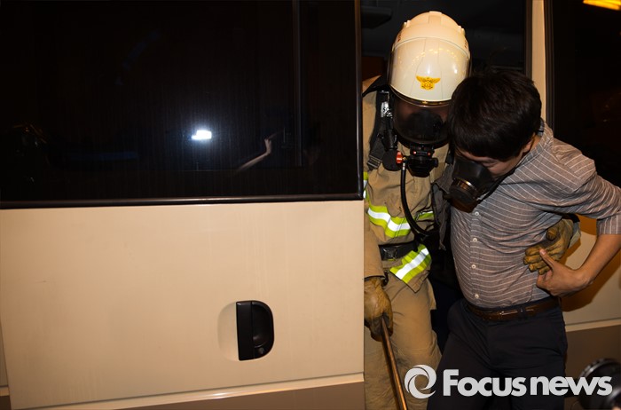 (서울=포커스뉴스) 18일 오후 서울 용산구 남산2호터널에서 재난대응 안전한국훈련-터널내 화재사고 대비 훈련이 진행되고 있다.