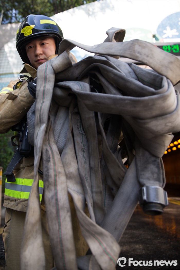 (서울=포커스뉴스) 18일 오후 서울 용산구 남산2호터널에서 재난대응 안전한국훈련-터널내 화재사고 대비 훈련이 진행되고 있다.