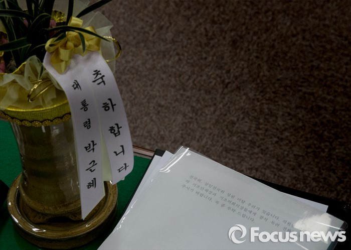 (서울=포커스뉴스) 18일 오후 서울 여의도 국회 정진석 새누리당 원내대표실에 박근혜 대통령의 원내대표 취임 축하난과 지난 17일 무산된 상임전국위원회 및 전국위원회 관련 보고 문서가 놓여 있다. 정 원내대표는 이날 오전 광주5·18민주화운동 기념식에 참석 후 KTX로 귀경 중 지역구인 충남 공주에서 하차 후 연락을 끊은 뒤 칩거에 들어갔다.
