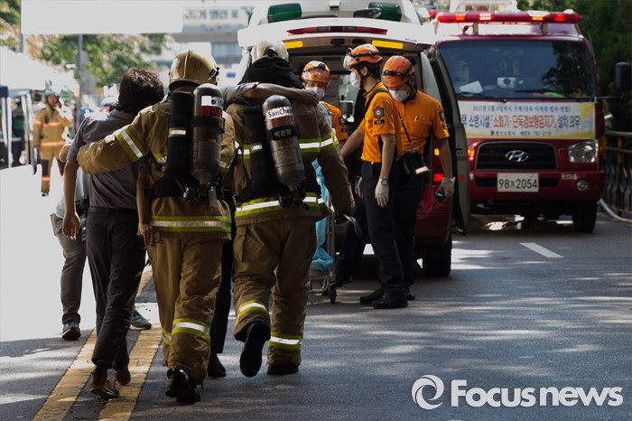 (서울=포커스뉴스) 18일 오후 서울 용산구 남산2호터널에서 재난대응 안전한국훈련-터널내 화재사고 대비 훈련이 진행되고 있다.