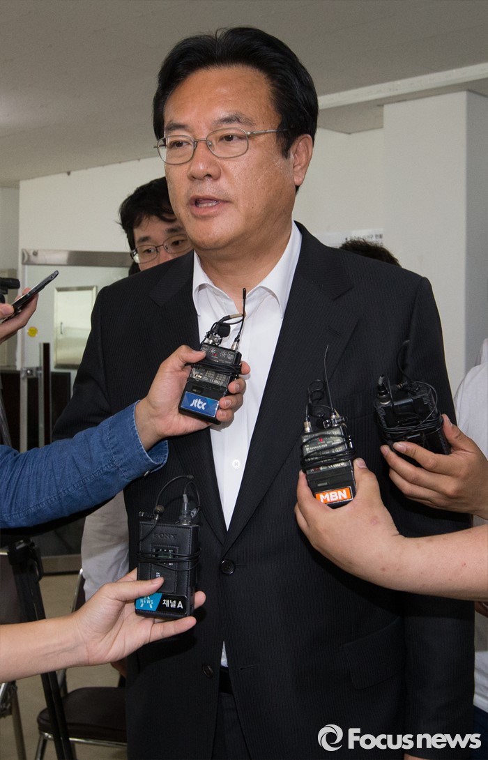(공주=포커스뉴스) 정진석 새누리당 원내대표가 18일 오후 충남 공주 지난 선거 당시 사용했던 선거사무소에서 측근들과 논의중 잠시 사무실을 나서며 취재진의 질문에 답변하고 있다.