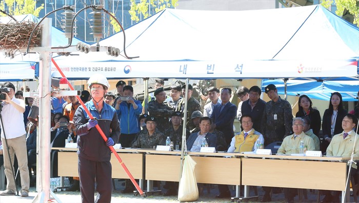 (강원=포커스뉴스) 18일 강원도 원주 한국관광공사에서 한국관광공사, 원주시, 원주경찰서, 군부대 등 유관기관 32개 기관이 참여한 가운데 2016년 재난대응 안전한국훈련 및 긴급구조종합훈련’이 열리고 있다. 이날 김종덕 문체부 장관, 정창수 한국관광공사 사장, 원창묵 원주시장이 참석했다. <사진제공=문화체육관광부>